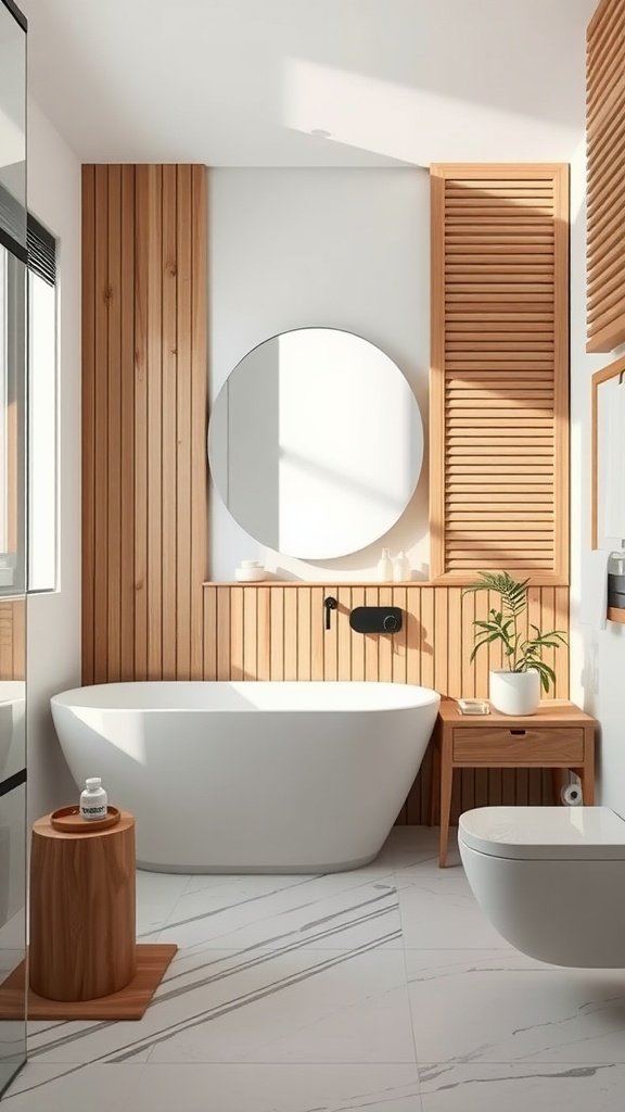 Slatted wood details can really bring a calming atmosphere to your bathroom. This natural element adds warmth and texture, making the space feel more inviting. Pair it with soft lighting, and you’ll have a cozy retreat right at home.